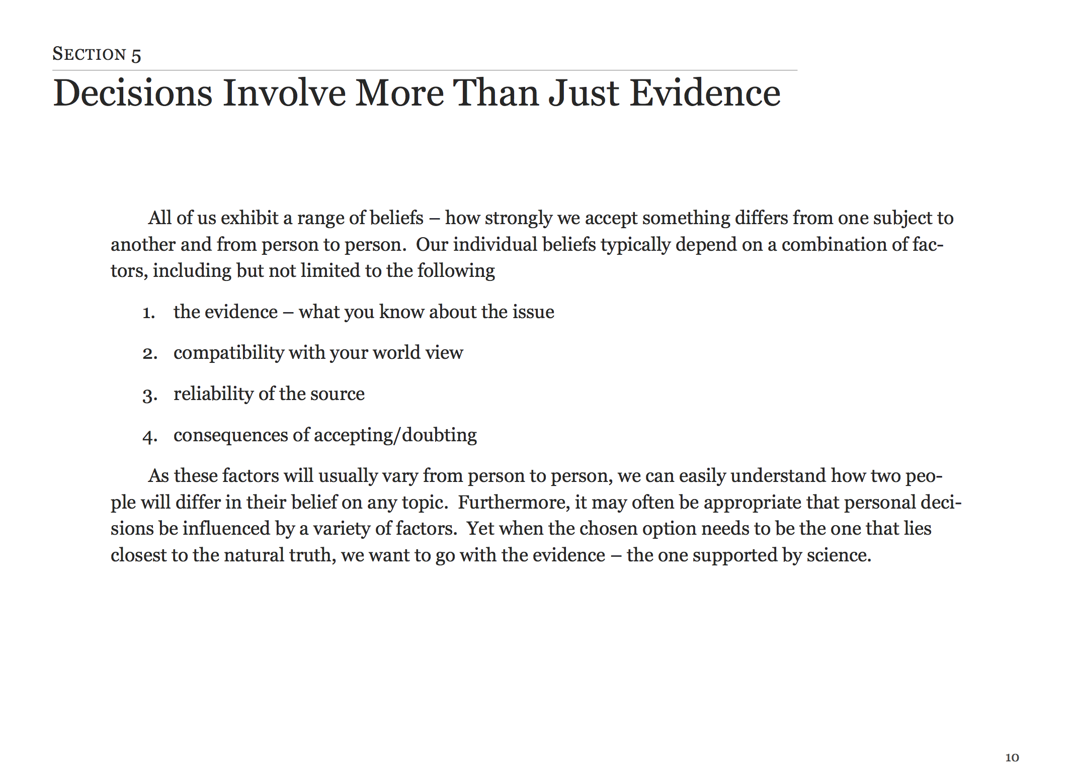 A course about making decisions, evaluating information, and knowing what to trust.